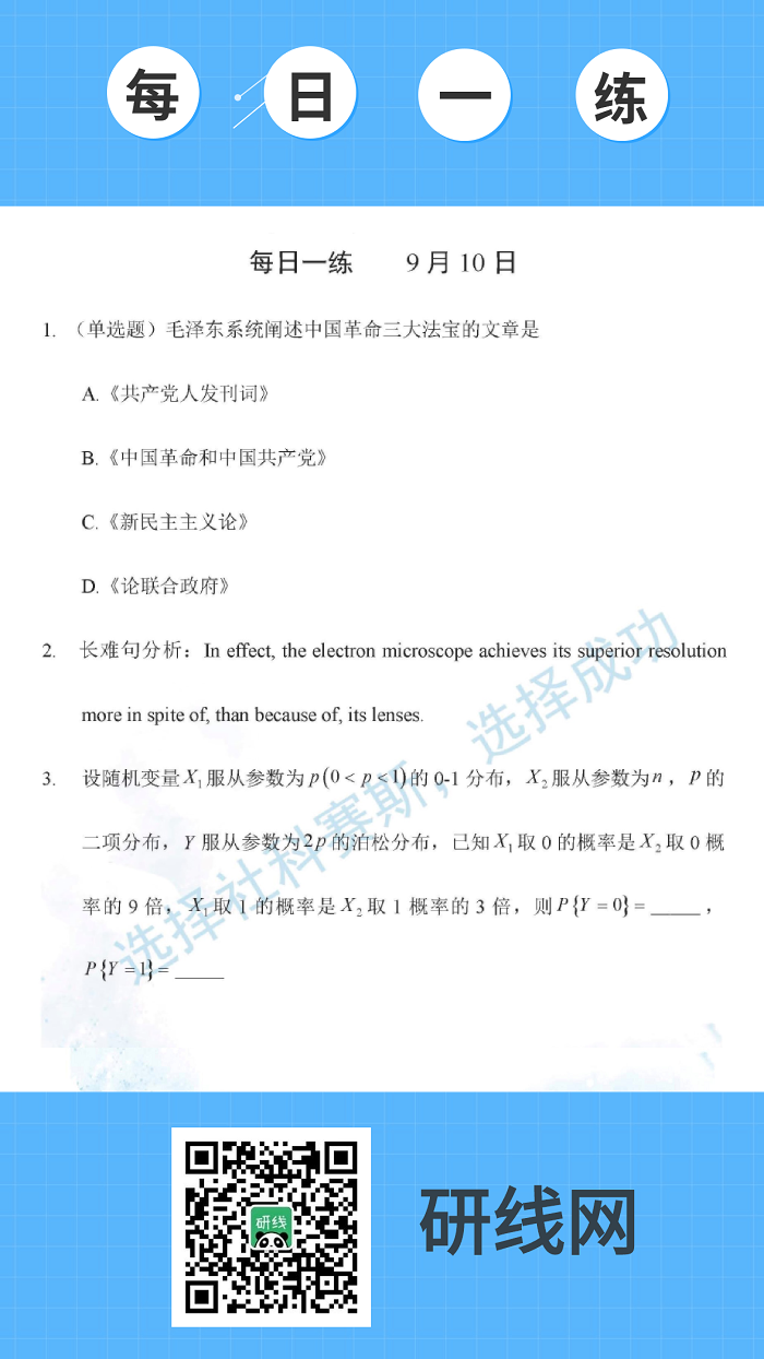 為了更好的復習和鞏固已經學過的知識,研線網小編為大家整理出幾道題,作為每日的練習,希望能夠幫助到同學們哦!
