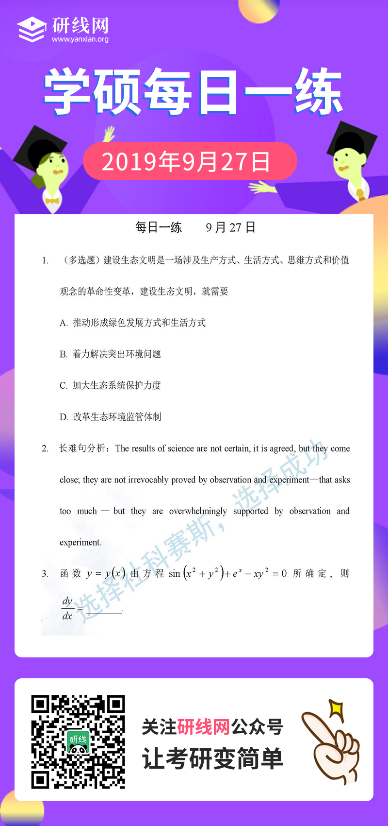 以上就是今日每日一練的全部?jī)?nèi)容,跟著每日一練,考研輕松復(fù)習(xí)!更多考試練習(xí),點(diǎn)擊考研每日一練!