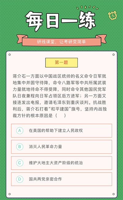 以上就是今日每日一練的全部?jī)?nèi)容,跟著每日一練,考研輕松復(fù)習(xí)!更多考試練習(xí),點(diǎn)擊考研每日一練!