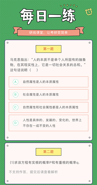 點擊進入:研線課堂萬題庫,每日習題不重復。全面題型任你刷,真題解析隨便看。