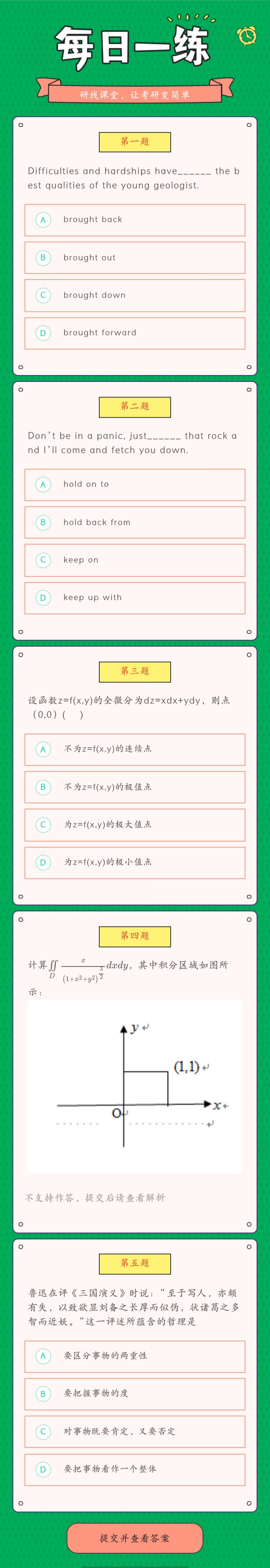 以上就是今日每日一練的全部內(nèi)容,跟著每日一練,考研輕松復(fù)習!更多考試練習,點擊考研每日一練!
