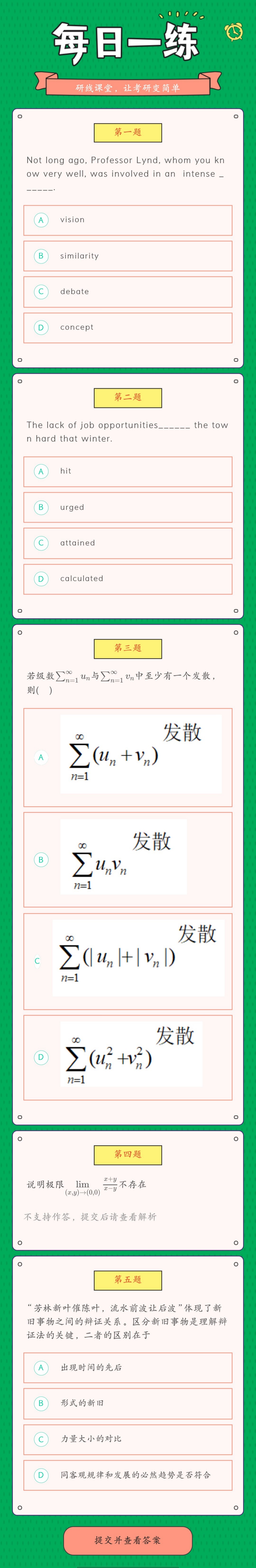 以上就是今日每日一練的全部內容,跟著每日一練,考研輕松復習!更多考試練習,點擊考研每日一練