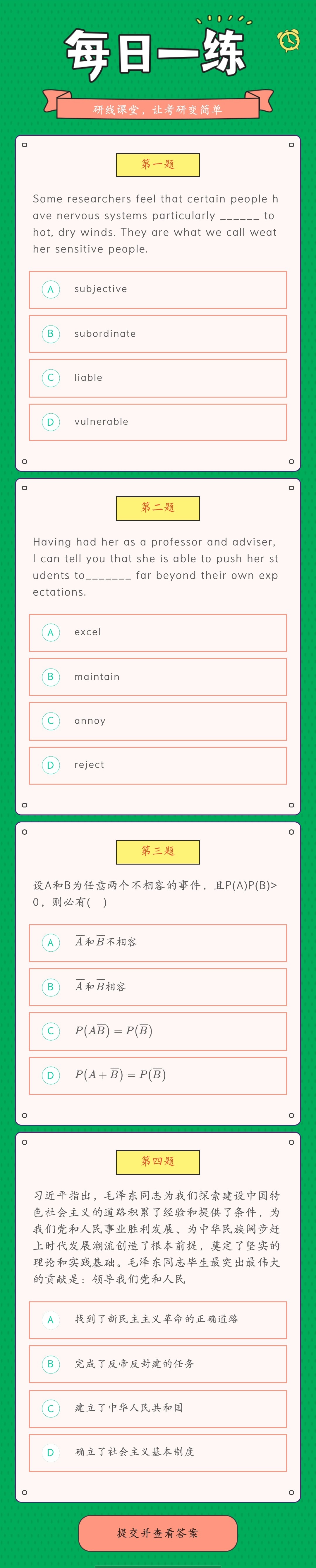 點擊進入:研線課堂萬題庫,每日習題不重復。全面題型任你刷,真題解析隨便看。