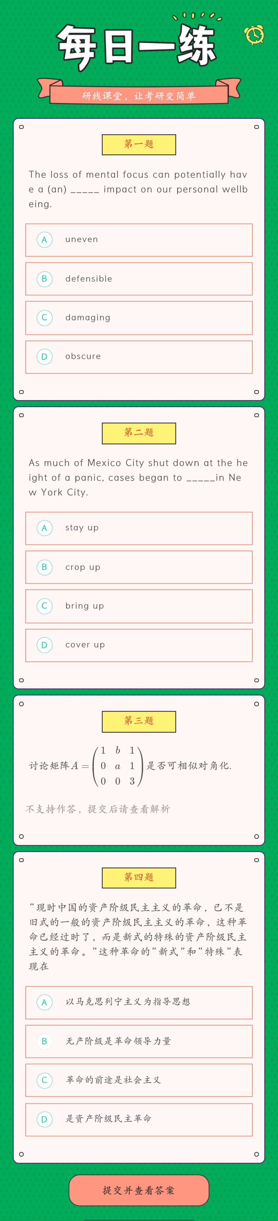 點擊進入:研線課堂萬題庫,每日習題不重復。全面題型任你刷,真題解析隨便看。