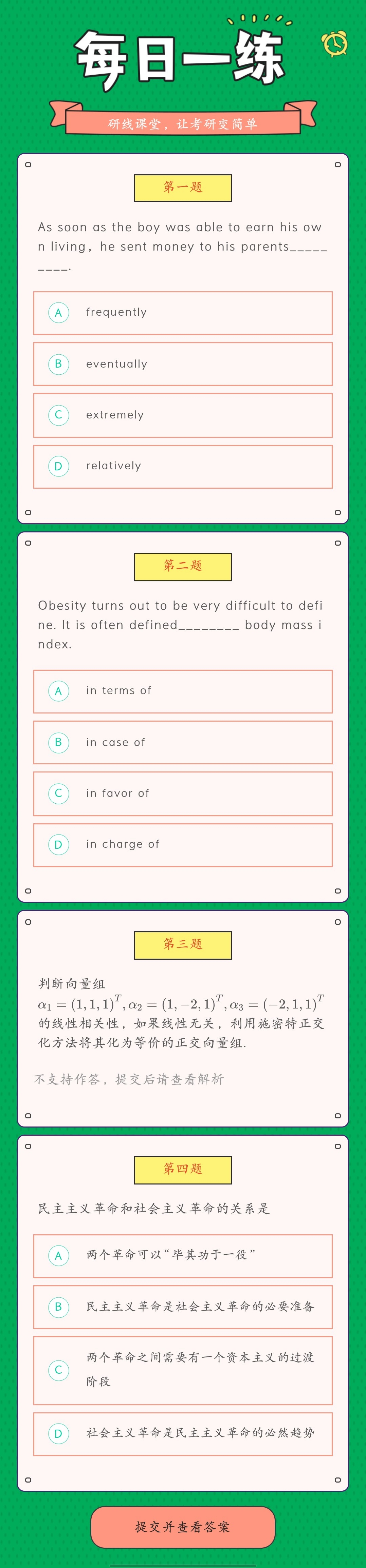 點擊進入:研線課堂萬題庫,每日習題不重復。全面題型任你刷,真題解析隨便看。
