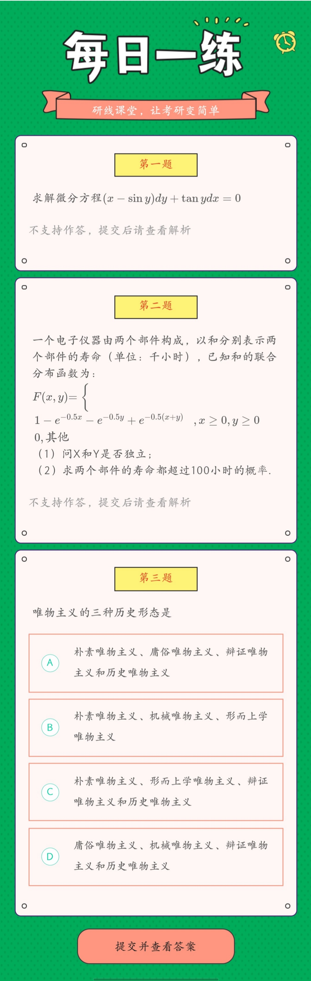 點擊進入:研線課堂萬題庫,每日習題不重復。全面題型任你刷,真題解析隨便看。