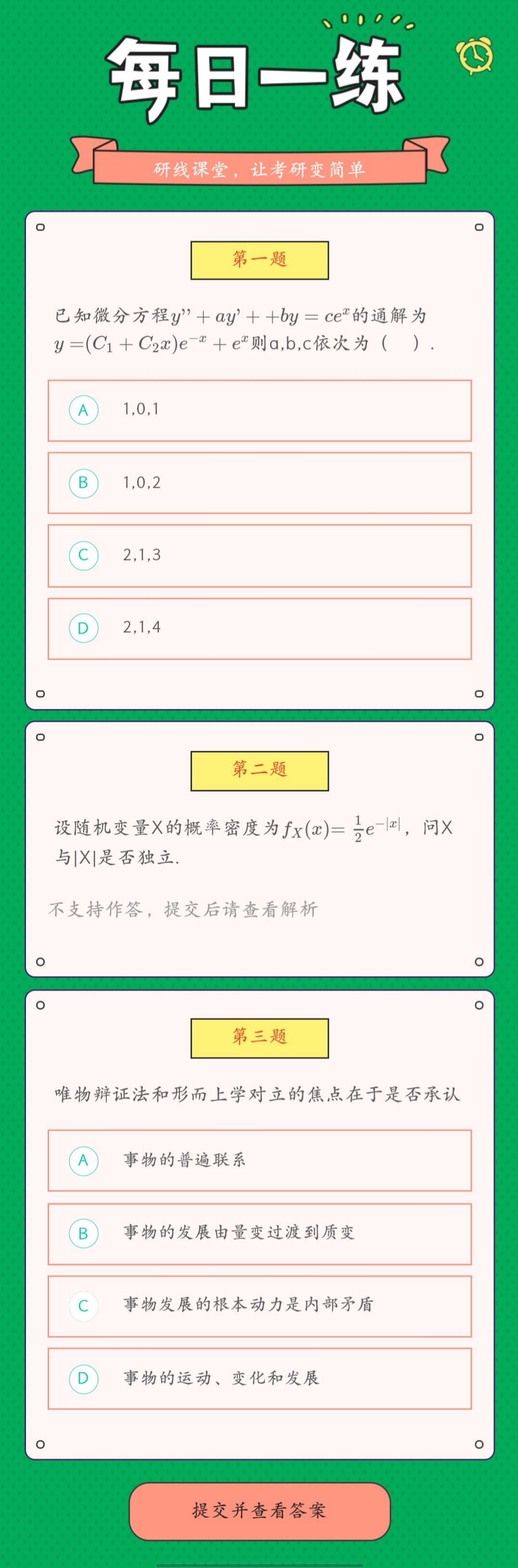 點擊進(jìn)入:研線課堂萬題庫,每日習(xí)題不重復(fù)。全面題型任你刷,真題解析隨便看。