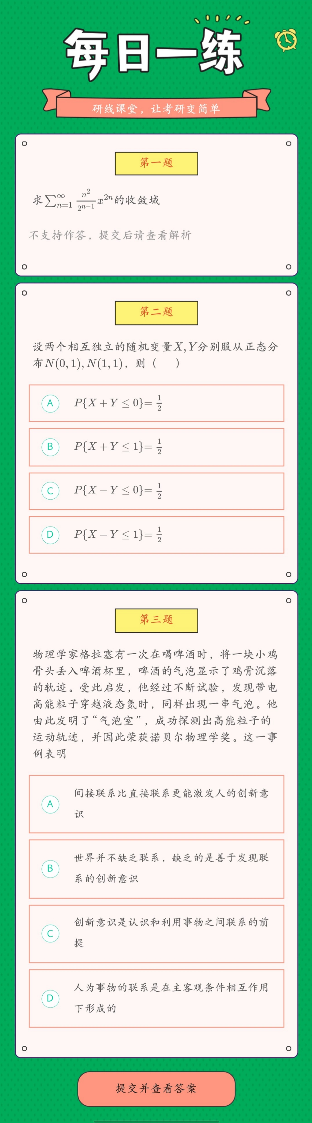 點(diǎn)擊進(jìn)入:研線課堂萬(wàn)題庫(kù),每日習(xí)題不重復(fù)。全面題型任你刷,真題解析隨便看。