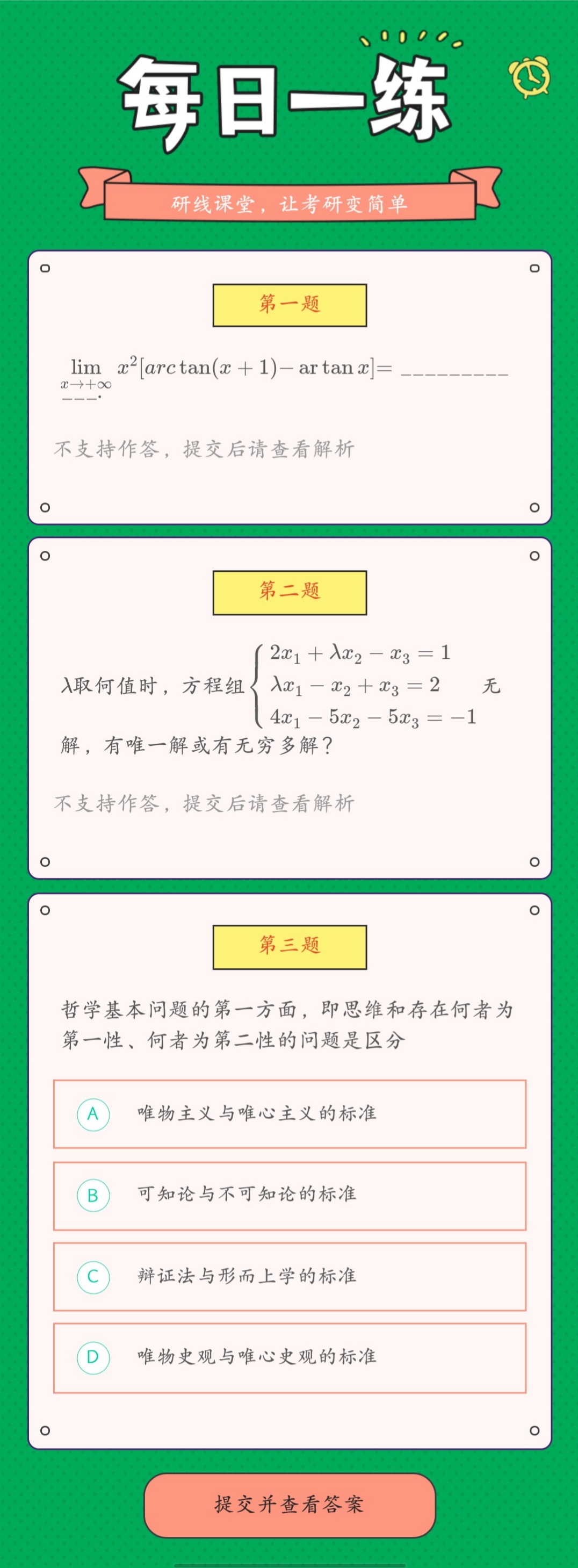 點擊進入:研線課堂萬題庫,每日習題不重復。全面題型任你刷,真題解析隨便看。