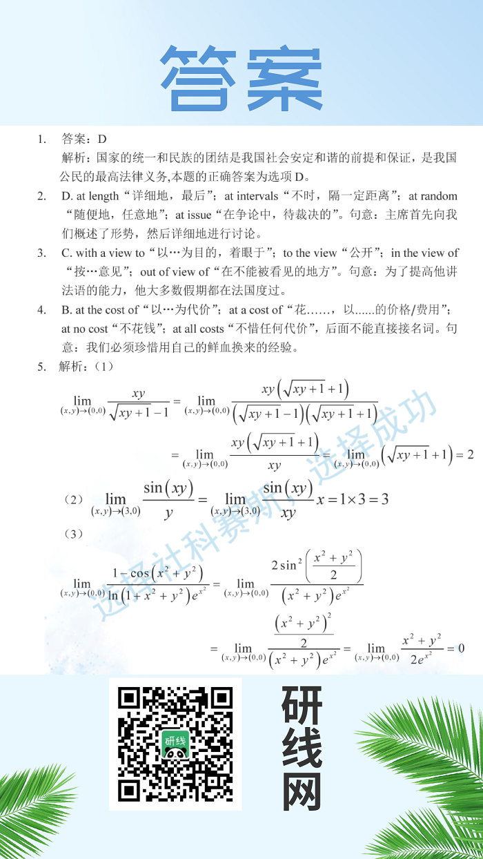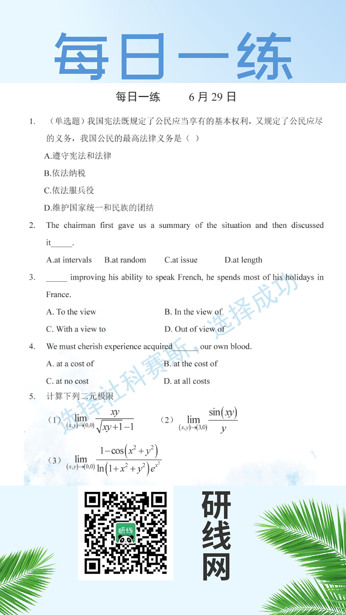 以上就是今日每日一練的全部內(nèi)容,跟著每日一練,考研輕松復習!更多考試練習,點擊考研每日一練!