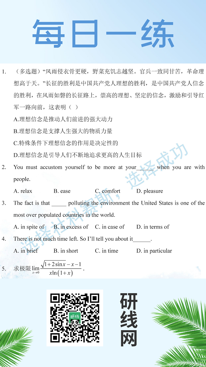 以上就是今日每日一練的全部內(nèi)容,跟著每日一練,考研輕松復(fù)習(xí)!更多考試練習(xí),點擊考研每日一練!