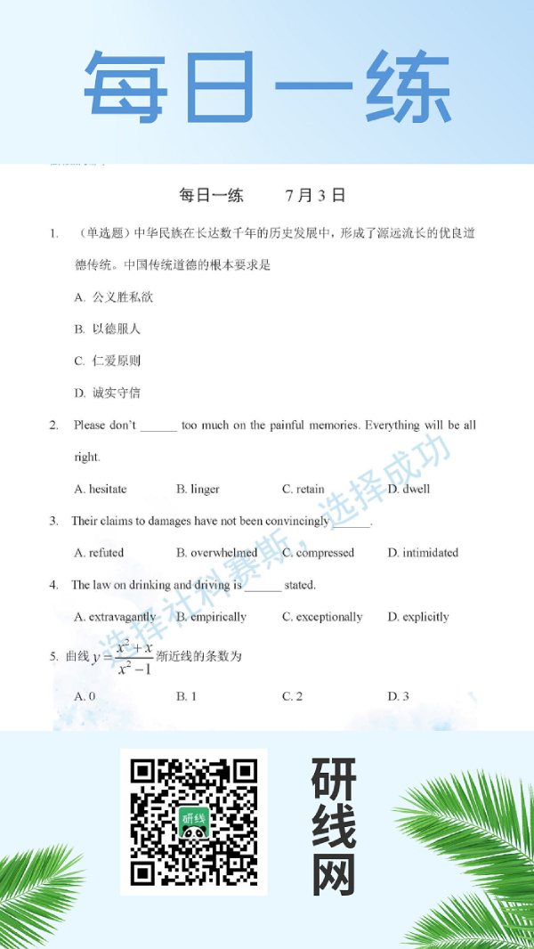 以上就是今日每日一練的全部內容,跟著每日一練,考研輕松復習!更多考試練習,點擊考研每日一練