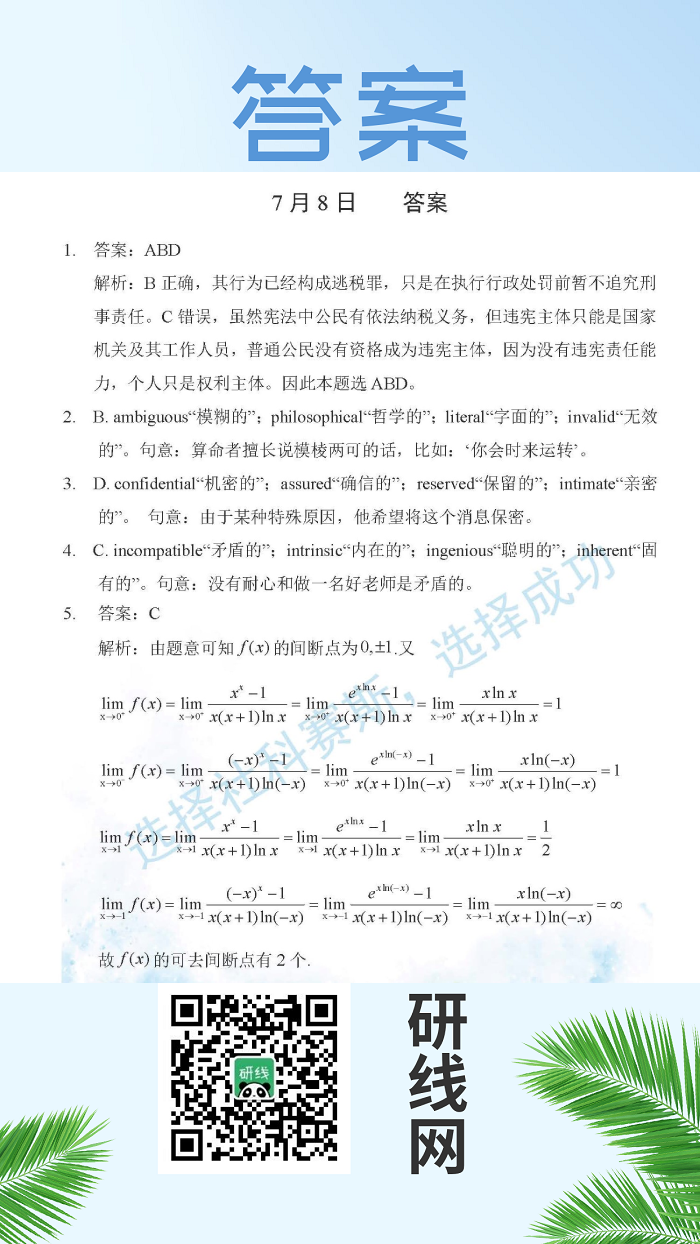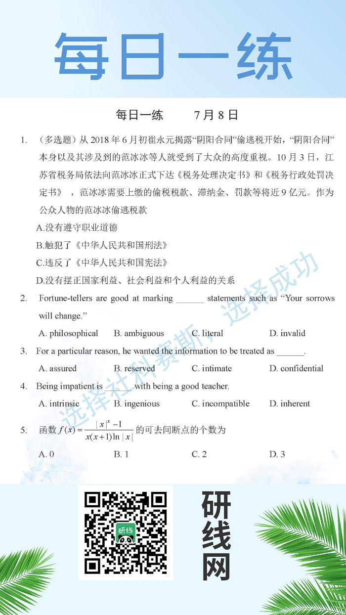 以上就是今日每日一練的全部內(nèi)容,跟著每日一練,考研輕松復(fù)習(xí)!更多考試練習(xí),點擊考研每日一練!