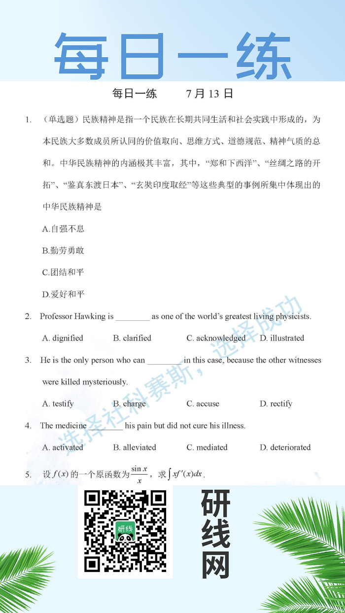 以上就是今日每日一練的全部內容,跟著每日一練,考研輕松復習!更多考試練習,點擊考研每日一練