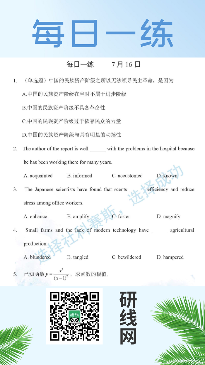 7月16日:2020考研學碩每日一練以及答案