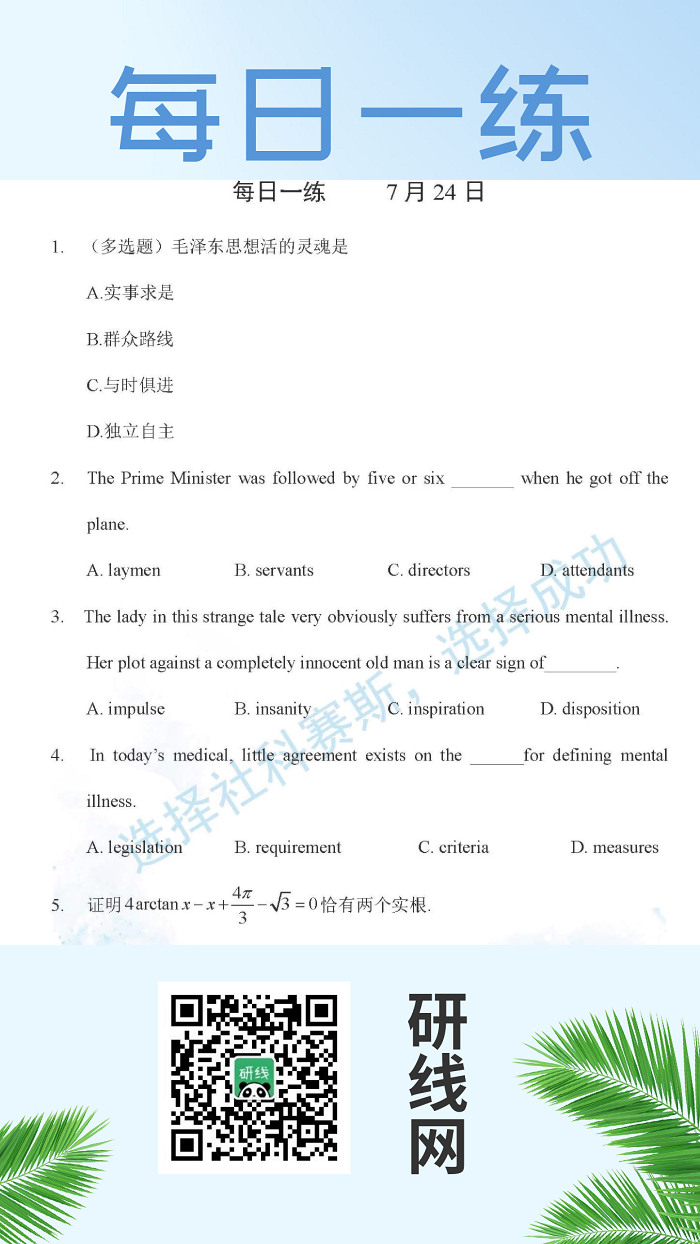 以上就是今日每日一練的全部內容,跟著每日一練,考研輕松復習!更多考試練習,點擊考研每日一練
