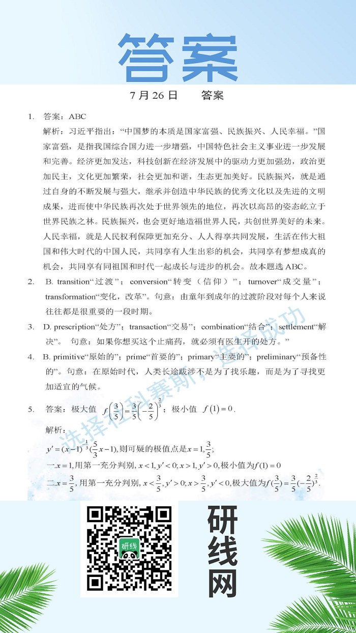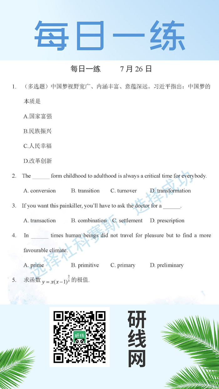 7月26日:2020考研學(xué)碩每日一練以及答案