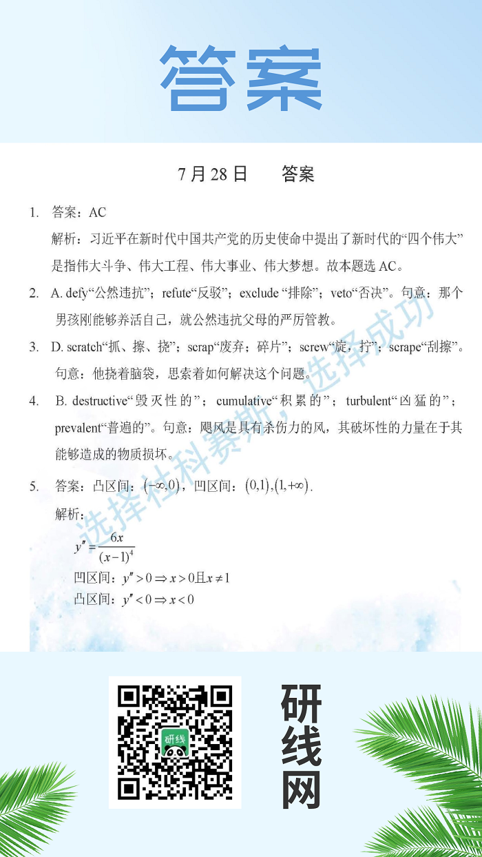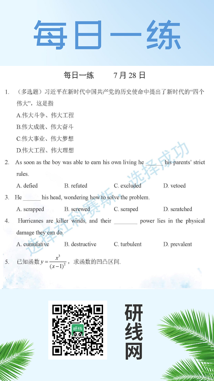 7月28日:2020考研學(xué)碩每日一練以及答案