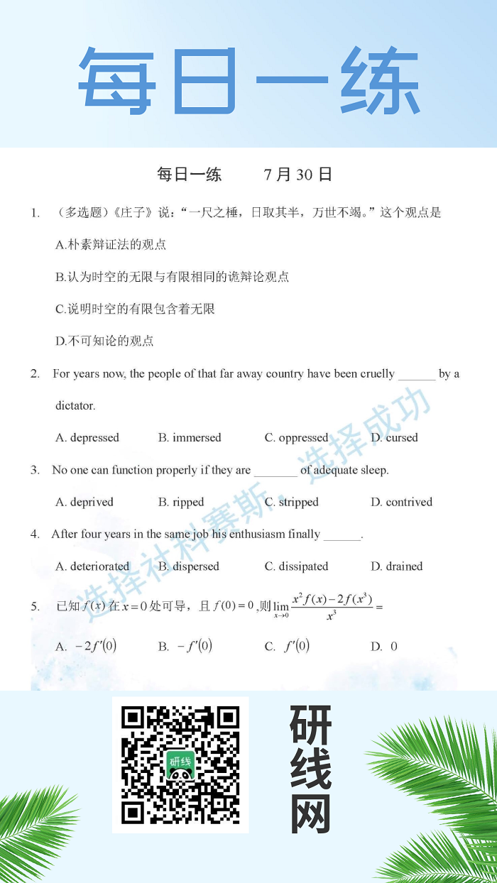 以上就是今日每日一練的全部內容,跟著每日一練,考研輕松復習!更多考試練習,點擊考研每日一練