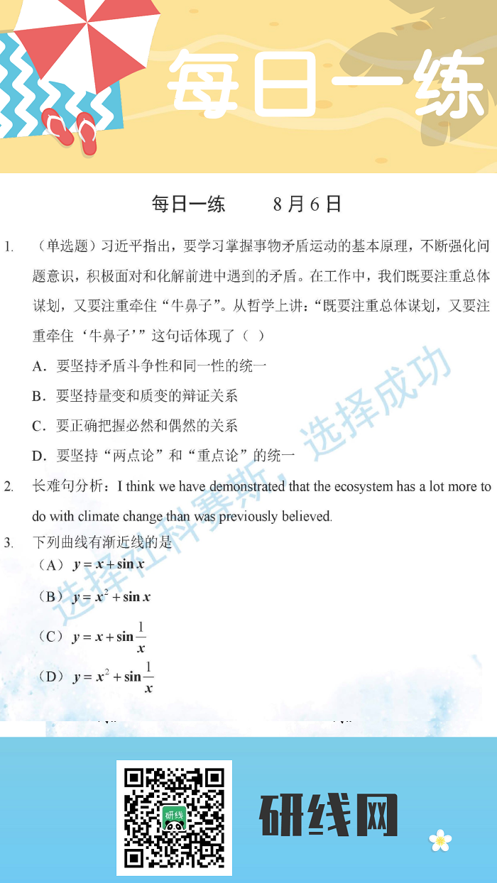以上就是今日每日一練的全部內容,跟著每日一練,考研輕松復習!更多考試練習,點擊考研每日一練!
