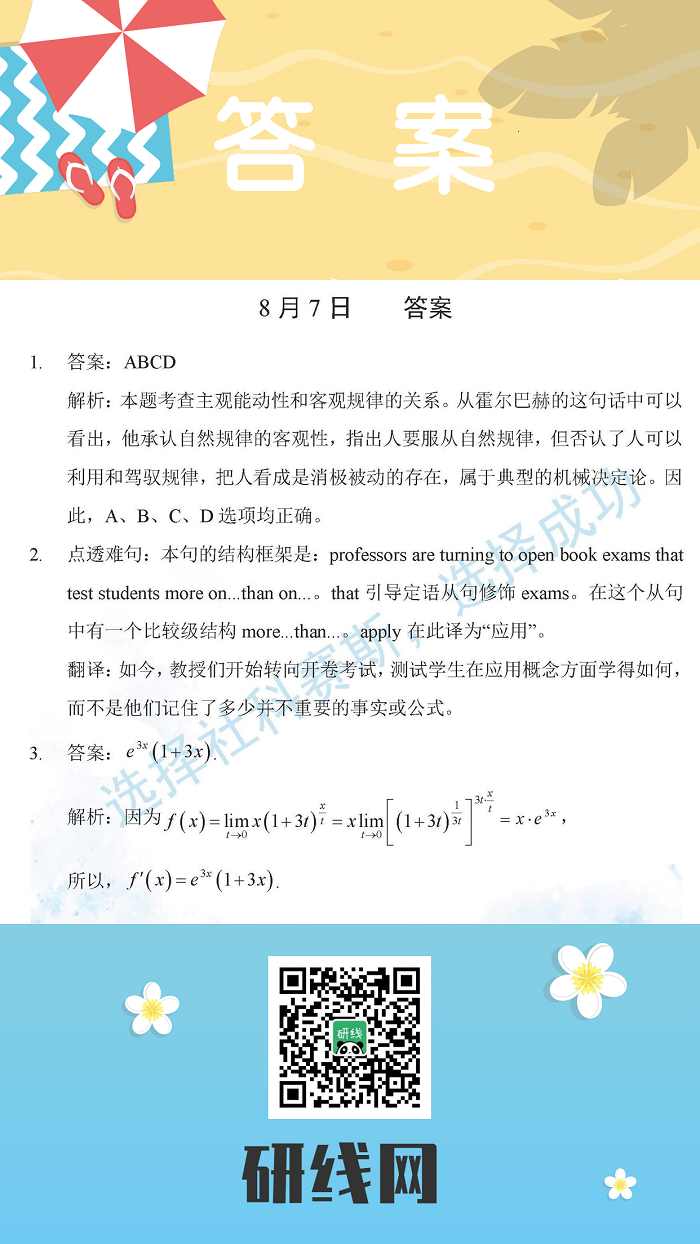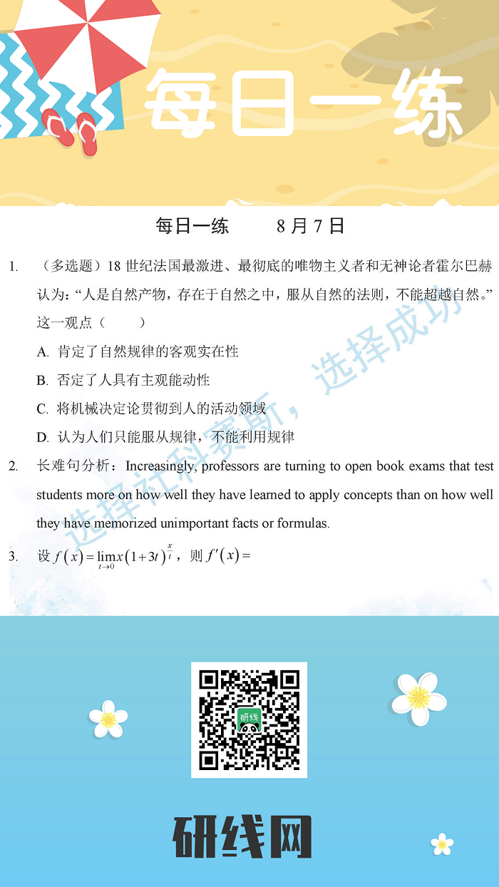 以上就是今日每日一練的全部內容,跟著每日一練,考研輕松復習!更多考試練習,點擊考研每日一練!