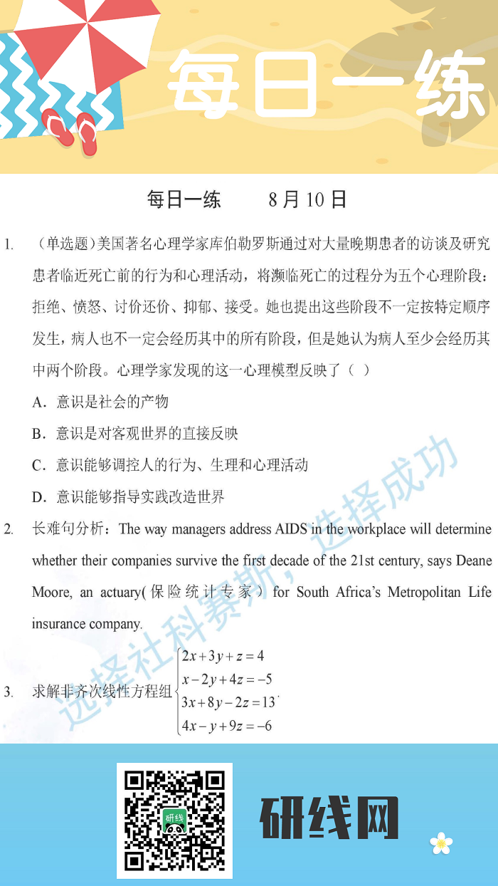 以上就是今日每日一練的全部內容,跟著每日一練,考研輕松復習!更多考試練習,點擊考研每日一練