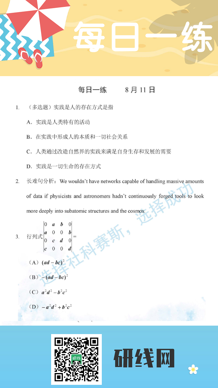 以上就是今日每日一練的全部內(nèi)容,跟著每日一練,考研輕松復(fù)習(xí)!更多考試練習(xí),點擊考研每日一練!