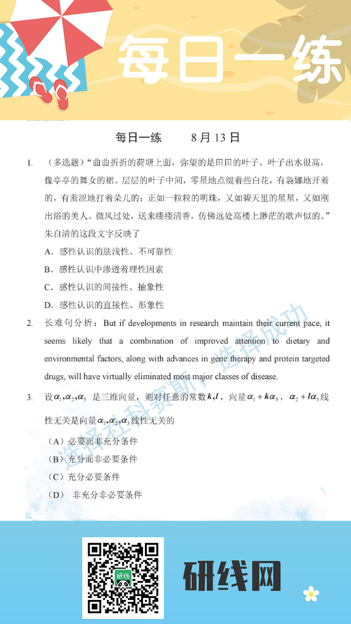 為了更好的復習和鞏固已經學過的知識,研線網小編為大家整理出幾道題,作為每日的練習,希望能夠幫助到同學們哦!