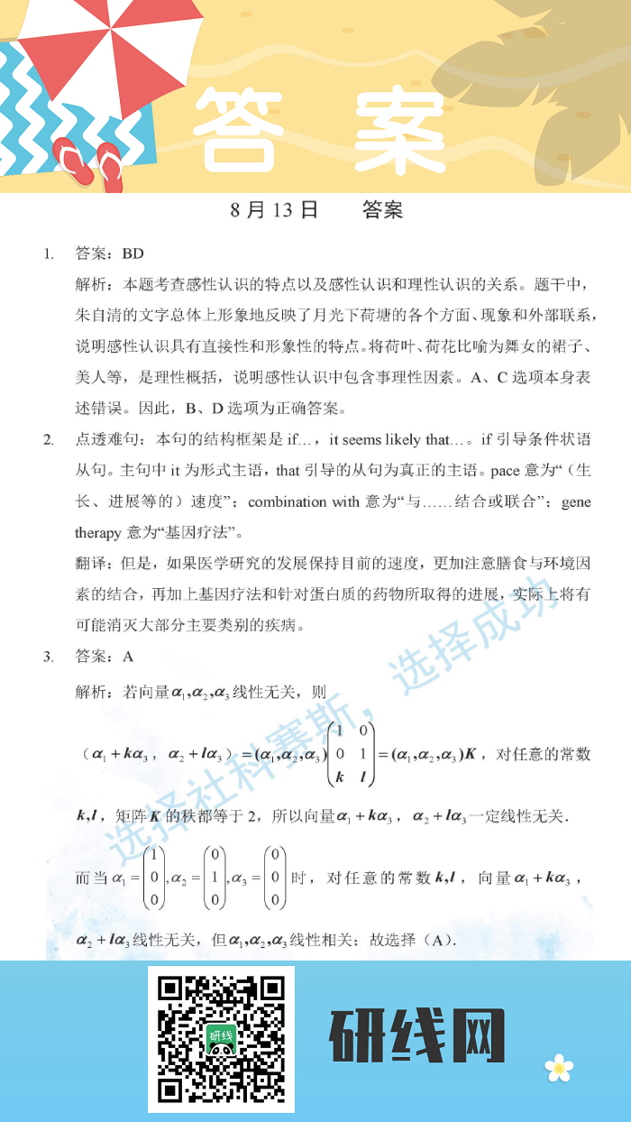 以上就是今日每日一練的全部內容,跟著每日一練,考研輕松復習!更多考試練習,點擊考研每日一練