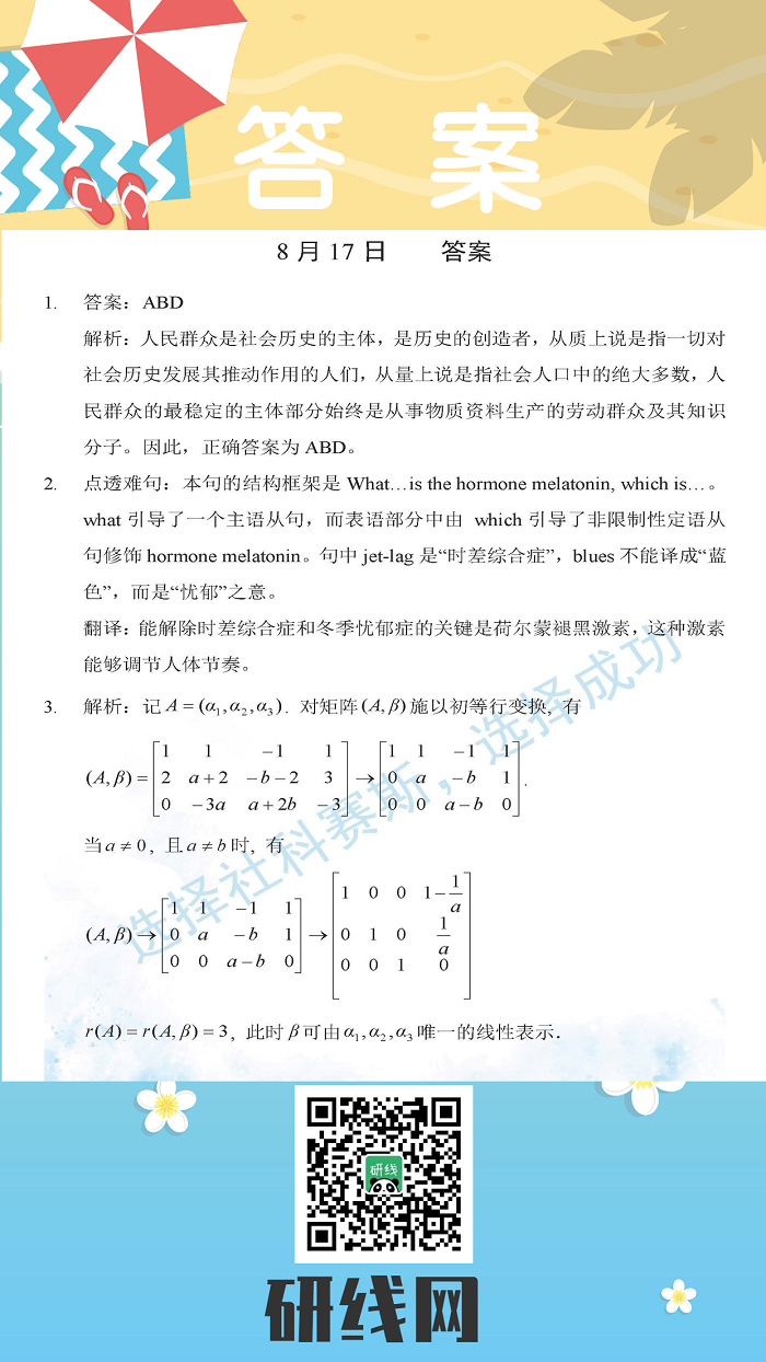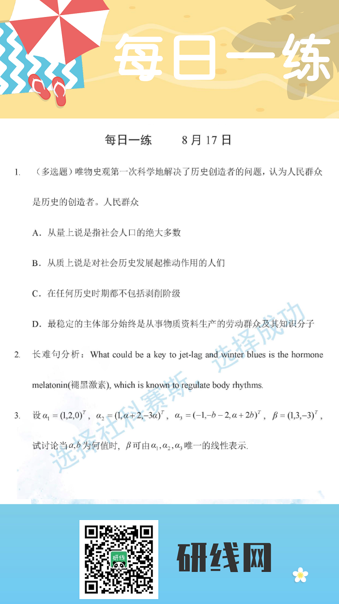 8月17日:2020考研學(xué)碩每日一練以及答案