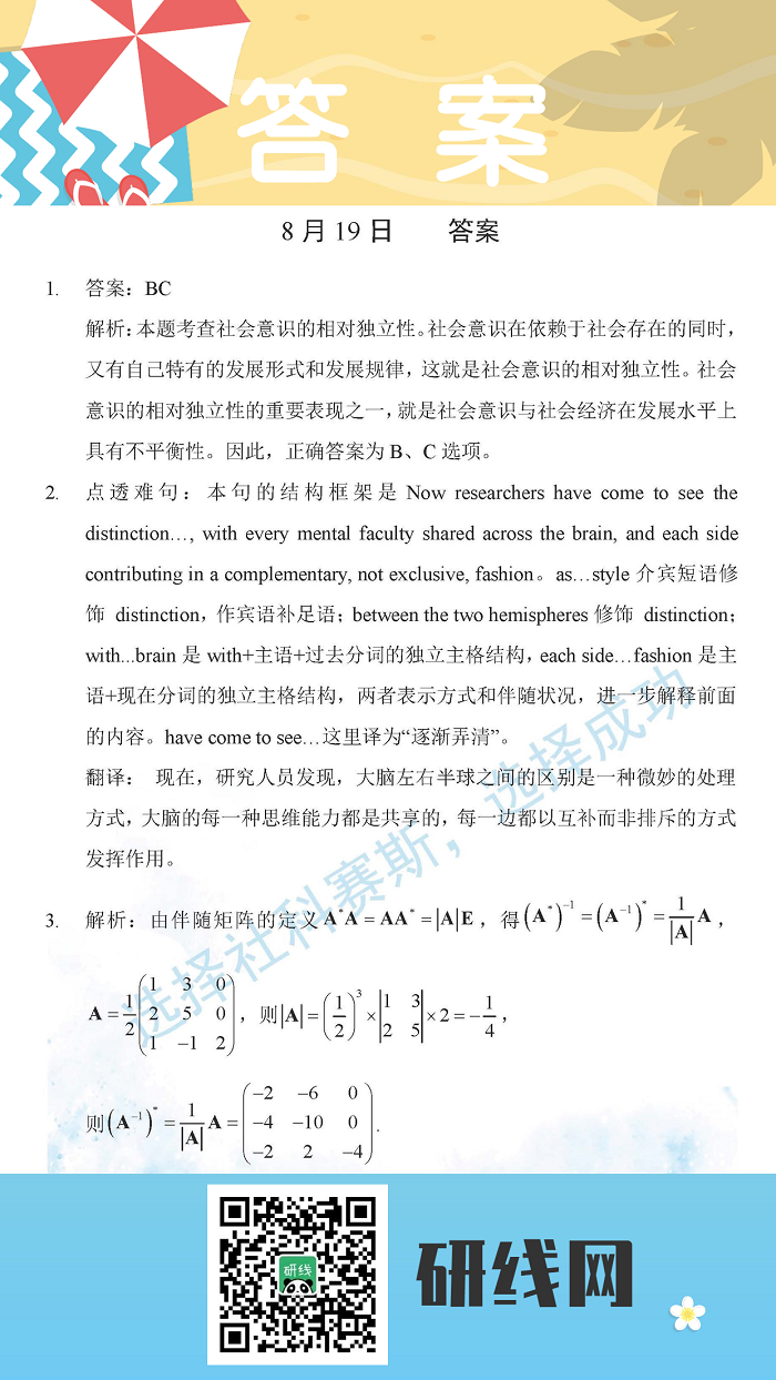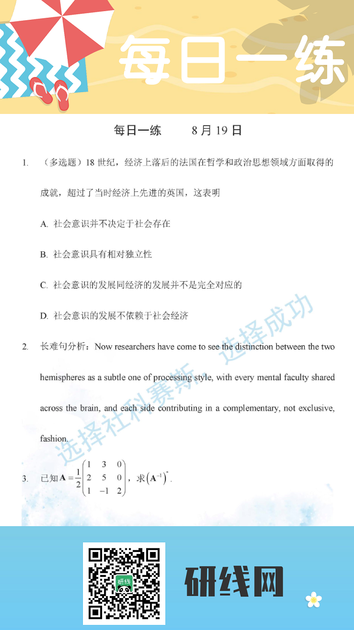 8月19日:2020考研學碩每日一練以及答案