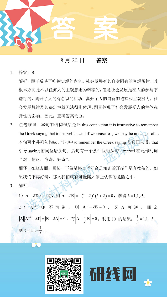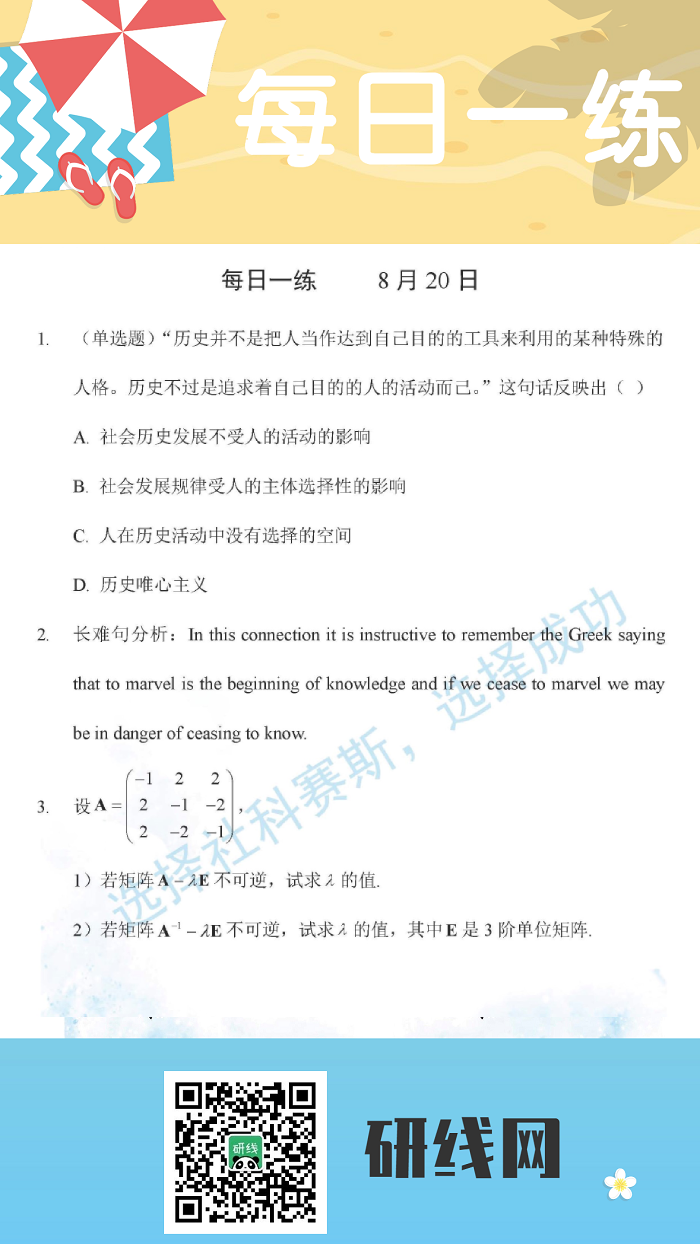 8月20日:2020考研學碩每日一練以及答案