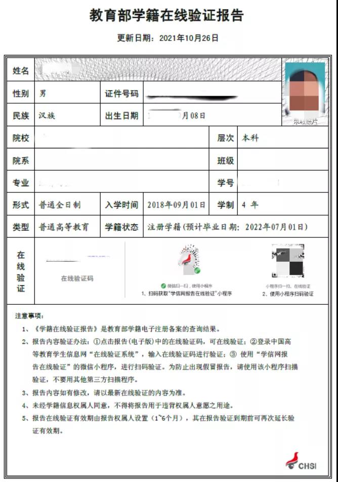 教育部學(xué)籍在線驗(yàn)證報(bào)告示例