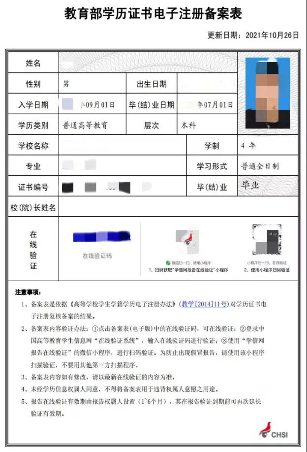 教育部學(xué)歷證書(shū)電子注冊(cè)備案表示例