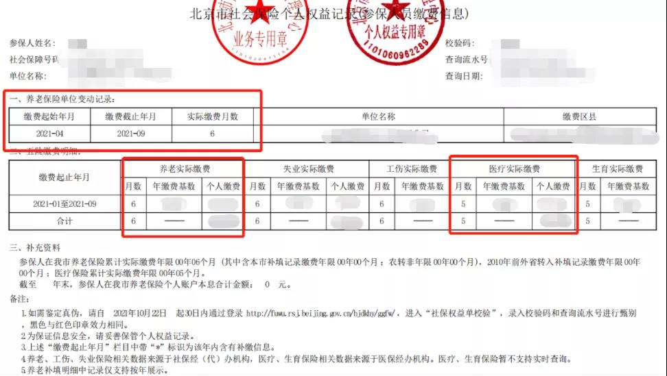 北京市社會(huì)保險(xiǎn)個(gè)人權(quán)益記錄(參保人員繳費(fèi)信息)示例