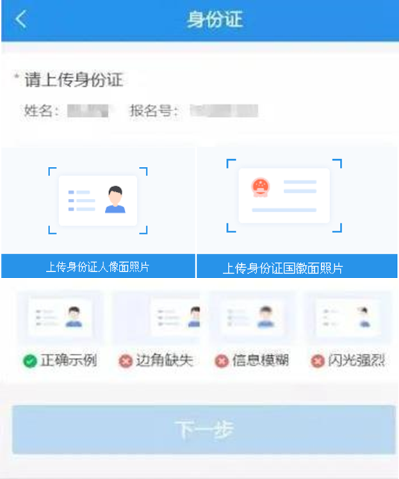 2. 確保身份證上的所有信息清晰可見、完整(沒有被遮擋或者被手指捏住);