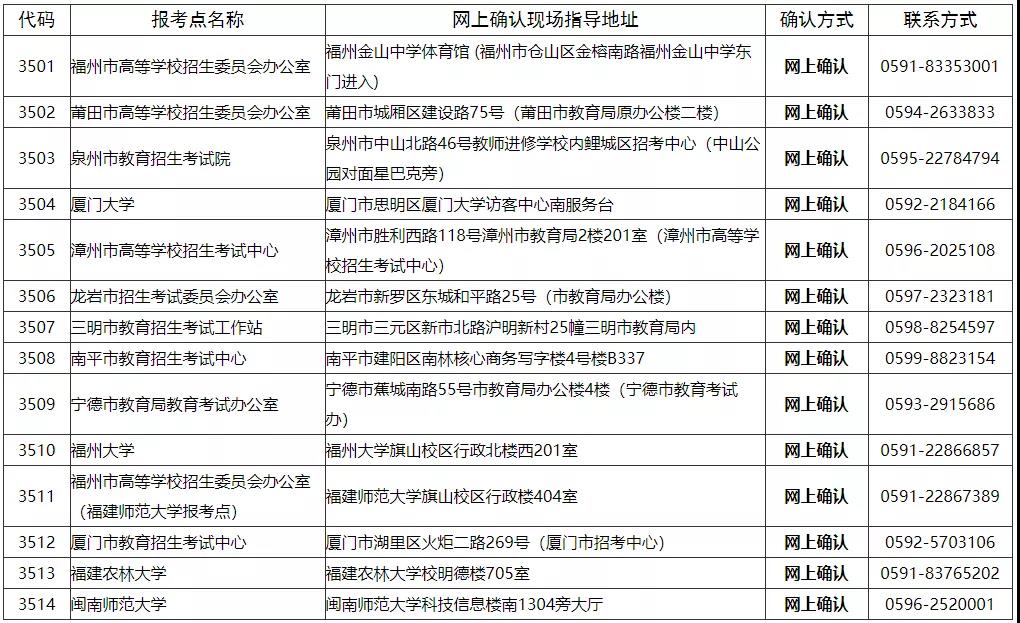 福建省2022年全國碩士研究生考試網上確認現場指導地點一覽表