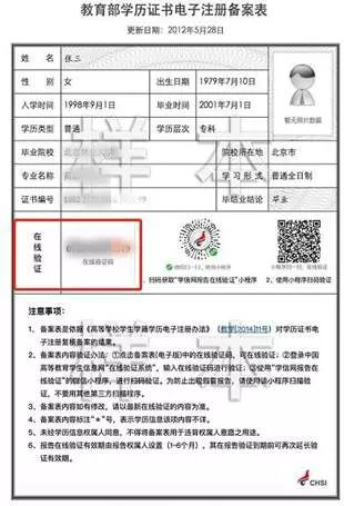 《教育部學歷證書電子注冊備案表》樣圖(僅學歷校驗有問題考生上傳)