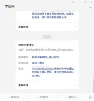 (四)在網上確認期間,請考生隨時關注研究生招生信息網站內消息,并及時登陸研招網查看提示消息和具體審核提示。