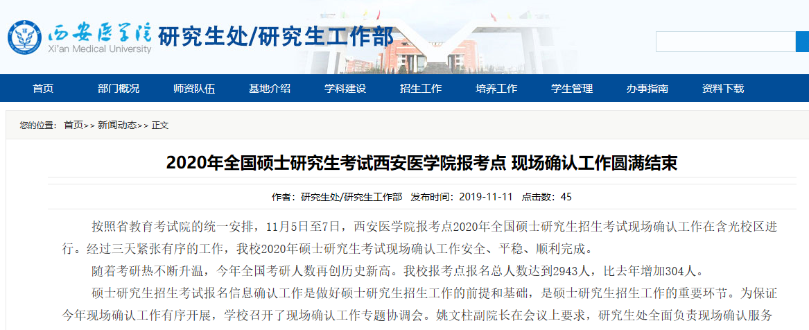 現(xiàn)場確認(rèn)工作結(jié)束后,我校將進(jìn)入2020年碩士研究生招生考試的考務(wù)籌備階段。