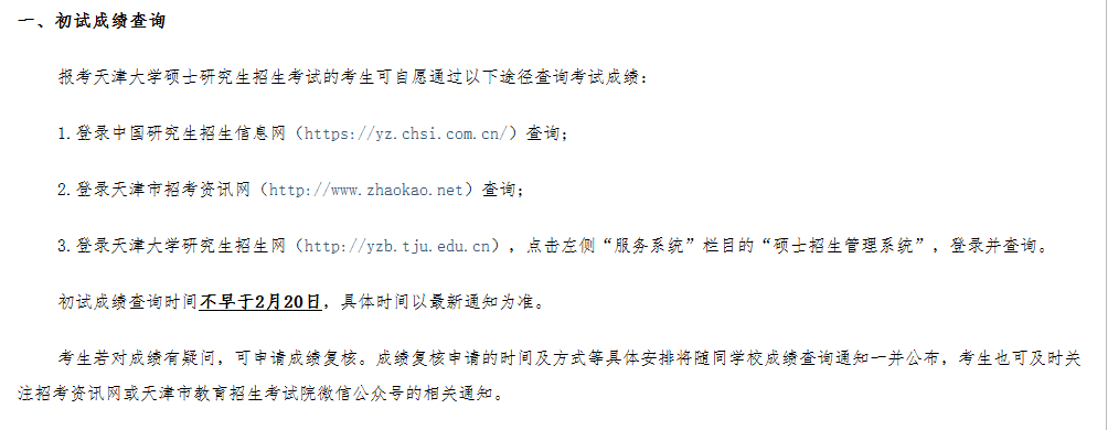 以上就是“2020考研初試成績:天津大學關于成績查詢時間不早于2月20號”的全部內容,祝2020考研的同學們成功上岸!