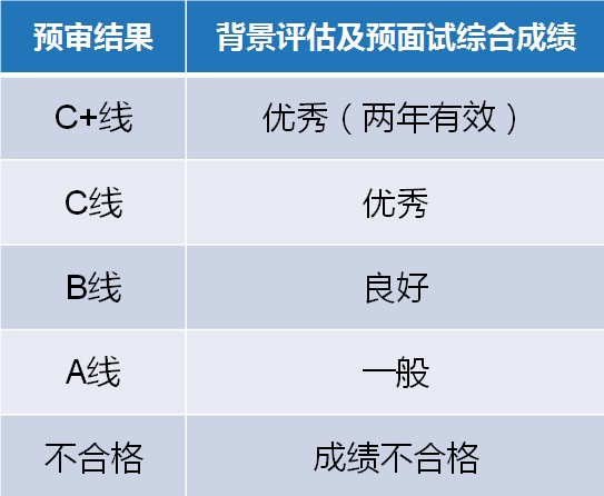 4.  前一年預審結果為C+線(2年有效)的申請人,必須在預審系統中完成當年申請,才能獲得前一年預審結果。