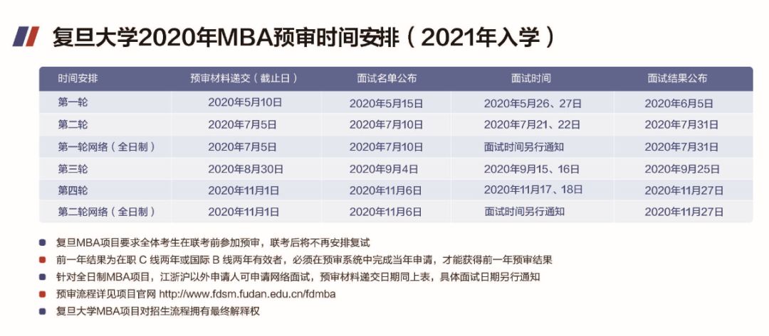 2021年入學(xué)復(fù)旦MBA分為四個(gè)預(yù)審輪次