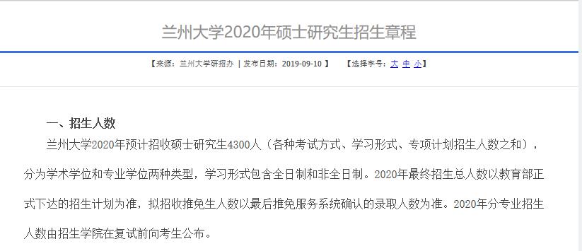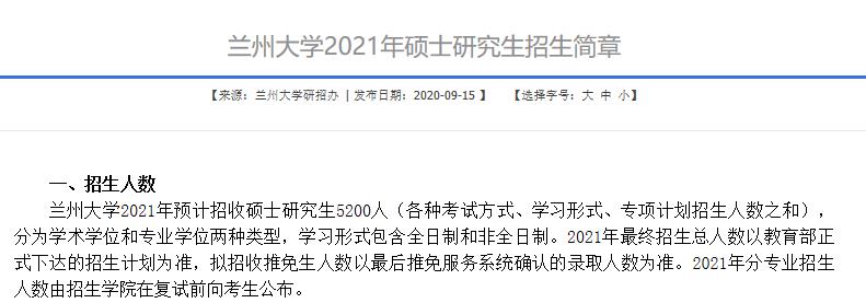 蘭州大學2020年研究生招生計劃約為4300名,2021年全日制招生計劃約為5200名,同比增長900名。