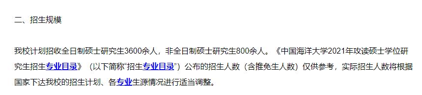 以上就是“考研院校公告:中國海洋大學2021年與2020年考研招生人數信息變動解析”的全部內容,想了解更多考研信息,請多多關注我們!