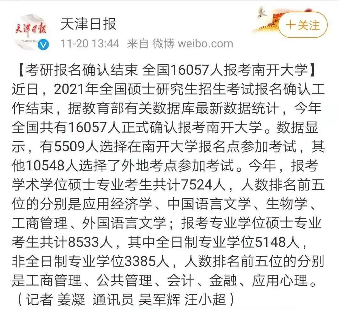 據教育部有關數據庫最新數據統計,全國共有16057人正式確認報考南開大學。
