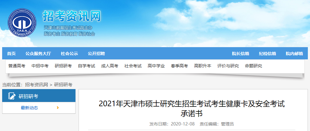 點(diǎn)擊下載:2021年天津市碩士研究生招生考試考生健康卡及安全考試承諾書(shū)