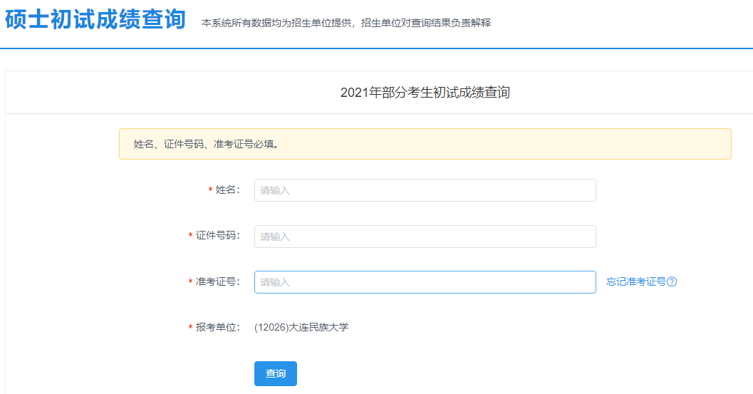 大連民族大學考研初試成績查詢入口:https://yz.chsi.com.cn/apply/cjcx/t/12026.dhtml