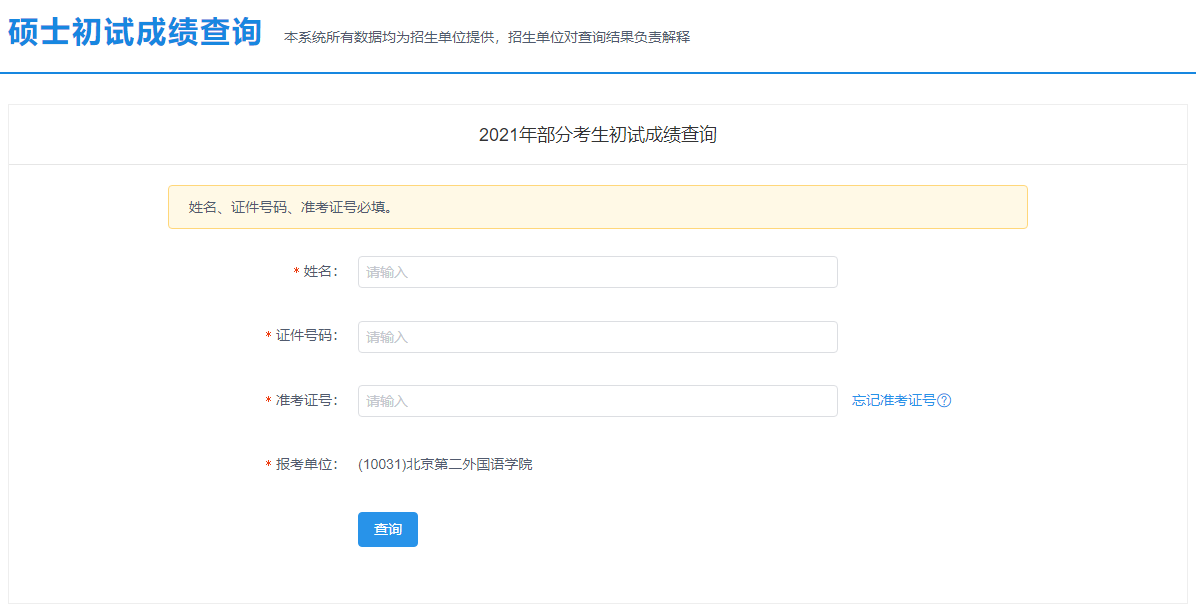 2021考研初試成績:北京第二外國語學院考研初試成績查詢入口開啟!初試成績已公布!