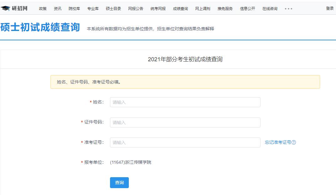浙江傳媒學院考研初試成績查詢入口:https://yz.chsi.com.cn/apply/cjcx/